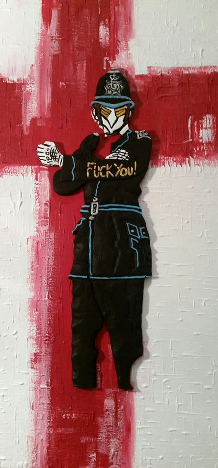 Con questa opera il maestro N.Rummo, non intende semplicemente celebrare l’uscita del R.Unito dall’ U.E. bensì, con tagliente e irriverente ironia, ricordare e rimarcare sia il ruolo eurocentrico che l’impero britannico ha avuto, almeno nel secolo scorso; sia quello di beffardo e sornione protettore dell’Europa quale longa manus degli U.S.A. , ma allo stesso tempo condomino snob e sempre critico; che storica amministratrice e facente funzioni di polizia, quale Inghilterra per quanto riguarda l’impero.