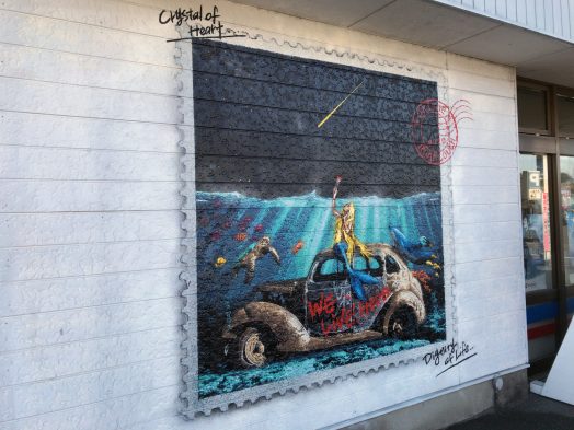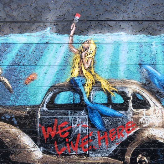 “Il concetto di questo murale è un piccolo desiderio del mondo protetto in cui vive la sirena. Gifu è un luogo con molti corsi d’acqua e fiumi. La gente del posto condivide un forte legame con l’acqua. Ecco perché l’ho dipinto come un pezzo a tema acquatico. Voglio che le persone provino qualcosa da “We Live Here“.