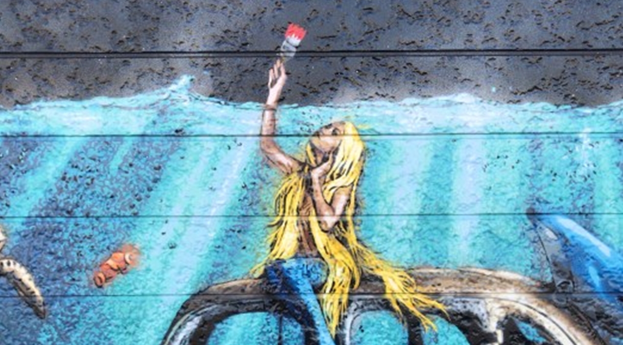 “Il concetto di questo murale è un piccolo desiderio del mondo protetto in cui vive la sirena. Gifu è un luogo con molti corsi d’acqua e fiumi. La gente del posto condivide un forte legame con l’acqua. Ecco perché l’ho dipinto come un pezzo a tema acquatico. Voglio che le persone provino qualcosa da “We Live Here“.