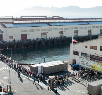 La sede che ospiterà l’evento fieristico è il Fort Mason Festival Pavilion. Il Fort Mason è un ex fortino dell’esercito americano utilizzato durante la Guerra di Secessione, poi come base per combattere le rivolte degli indiani alla fine del XIX sec., e successivamente, nel 1972, adibito ad usi civili. Oggi fa parte della Golden Gate National Recreation Area. La sua posizione privilegiata sul lungomare della Baia di San Francisco, tra Fisherman’s Wharf e Marina District, offre anche una vista privilegiata dell’isola di Alcatraz. Il sito di 5 ettari ospita spazi artistici, un bar, un ristorante e una caffetteria ed è anche noto come Fort Mason Center for Arts & Culture. Upper Fort Mason è occupato oggi da organizzazioni non-profit, mentre Lower Fort Mason, nelle strutture militari rinnovate (“Landmark Buildings A-E”) edifici costruiti all’inizio del XX sec e utilizzati come punto di imbarco per i soldati in partenza per il Pacifico, dal 1910 alla Guerra di Corea, ospita teatri e sale per spettacoli, il Museo ItaloAmericano, il San Francisco Museum of Modern Art Artists Gallery, il famoso ristorante vegetariano Greens, enti di beneficenza come la Long Now Foundation.