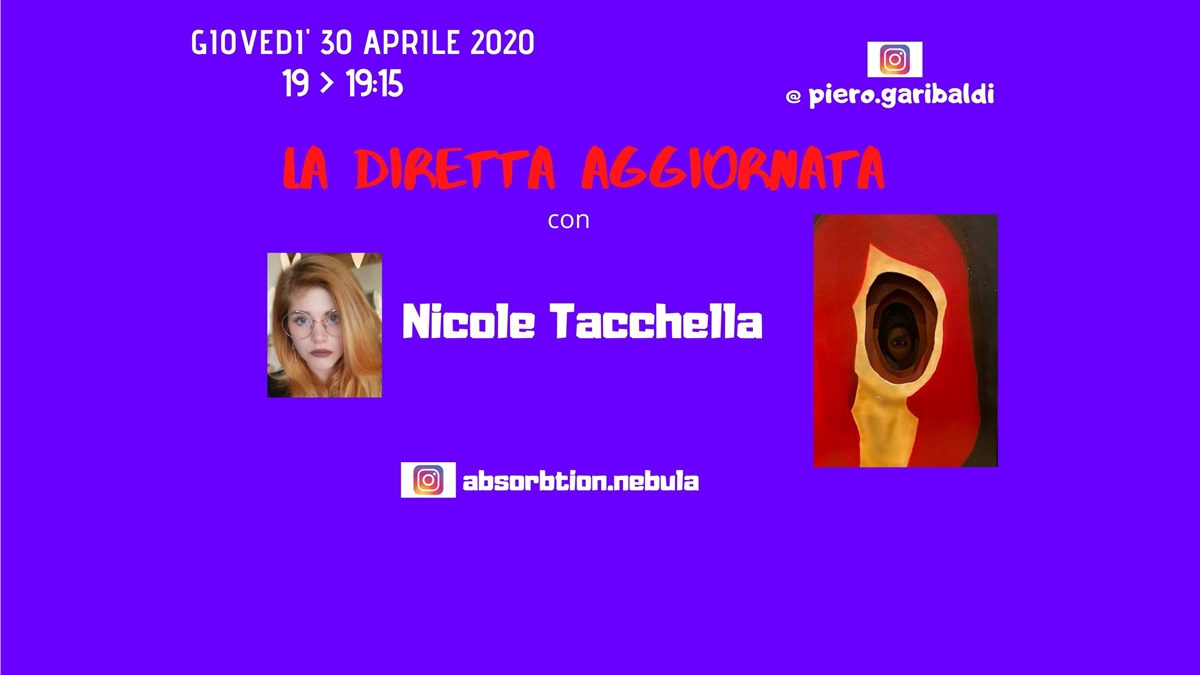 Riscuote grande successo “La Rubrica Aggiornata”, appuntamento settimanale in diretta sul social network Instagram a cura di Piero Garibaldi, profilo di spicco nella progettazione e comunicazione artistica. La rubrica propone una serie di incontri e confronti virtuali che riportano alle tematiche dell’arte ed alle sue molteplici sfaccettature. La diretta di questo ultimo giovedì di Aprile sarà incentrata sulla giovane artista Nicole Tacchella.