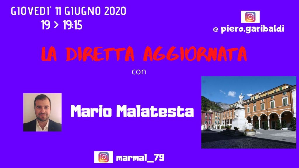 Giovedì 11 Giugno, ore 19.00 Mario Malatesta sarà ospite de “La Diretta Aggiornata” dal profilo Instagram di Piero Garibaldi @piero.garibaldi